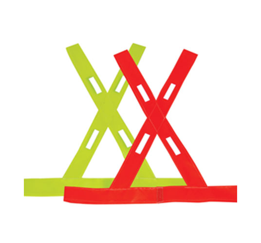 CARACTERÍSTICAS: Fabricadas en PVC, incluyen cierre de abrojo. Poseen 4 bandas reflectivas en el frente y 4 en la parte posterior. Cada banda mide 2,5 cm x 6 cm.