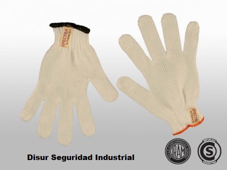 Guante tejido PEFV1 de máxima resistencia al corte compuesto por fibras Spectra®. Este hilado representa la más alta tecnología en resistencia al corte. Consiste de un hilo de fibra de vidrio de alta resistencia a la tracción, envuelto con un hilado de polietileno de ultra alta concentración molecular, que tiene características únicas en el mundo. Es 10 veces más resistente a la tracción que el acero. El corte por impacto, mucho menos frecuente, como ser la caída de una hoja de metal en la zona de cruce del pulgar, es minimizado ya que la fibra Spectra tiene altonivel de orientación, pudiendo así dispersar el shock de un impacto muy rápida y eficientemente. PEFV1. línea Cobra. Largo Standard. Alta resistencia a la tracción y la deformación. Baja elongación. Baja densidad (peso). Alta durabilidad. Hilado compuesto, flexible, suave y confortable. Maximización de la resistencia al corte, la resistencia química delos materiales empleados permite que los guantes puedan ser lavados con detergentes o lavandina sin afectar sus propiedades. Aptos para esterilizar con cloro. Altísima resistencia a los cortes. Sensibilidad táctil y confort