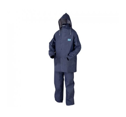 Descripción: Traje para lluvia, en PVC / Casaca con cierre y botones / Pantalón tipo jardinero.